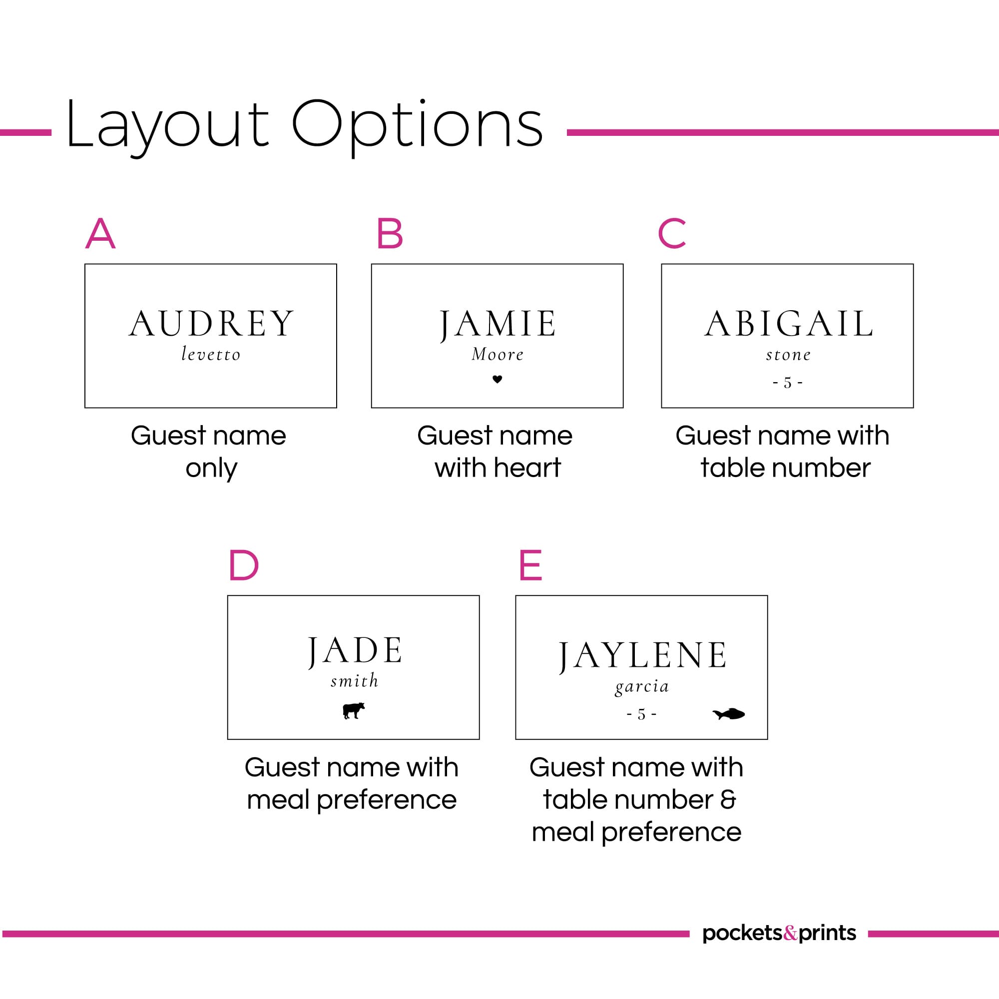 – Fill in guest names, table numbers, and meal preferences (if required)